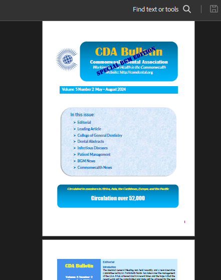 The Commonwealth Dental Association publishes the CDA Bulletin three times a year, providing members with essential insights and updates. This complimentary publication is designed to keep our members informed and engaged with the latest developments in the dental community.